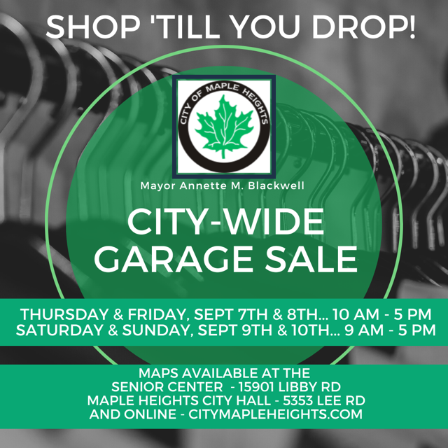 The Annual City-Wide Garage Sale gets underway tomorrow! We have hard copy maps available at the Senior Center; as well as an electronic map located here: https://www.google.com/maps/d/u/0/viewer?mid=1rCH4FF5WbaQbZkrEXx_9OIu76DsCKzw&ll=41.406139006655756%2C-81.55516015&z=14