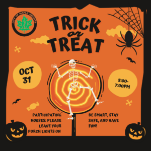 Maple Heights Trick or Treat is set for Monday, October 31st from 5:00-7:00pm. Participating houses: Please have your porch light(s) on. As a reminder: please wear Reflective clothes/ lights as you are out enjoying this event; remember to stay out of the streets, and look both ways before crossing- and as always: watch for traffic.