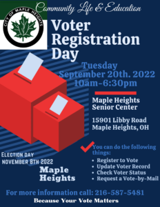 Plan to attend the Voter Registration Day sponsored by the Community Life and Education Committee.