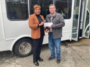 Mayor Blackwell presented a check to Mr. Dane Patterson, of Bus Services Incorporated that was partially paid for by a NOACA Federal Grant for Enhanced Mobility of Seniors and Individual with Disabilities (Section 5310) City of Maple Heights, Human Services Department and donations.