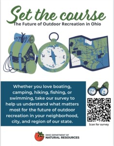 The Ohio Department of Natural Resources (ODNR) wants to hear from you!  Please take a few moments and complete the survey and provide feedback on what you’d like to see for outdoor recreation here in Ohio for 2023!