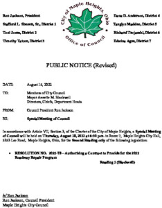 August 18, 2022 Special Meeting Of Council Revised Notice 🡇pdf - 0.3 MiB DateAugust 16, 2022 Downloads449 lcicirella2022-08-16T16:21:46-04:00August 16th, 2022| Share This Story, Choose Your Platform! FacebookTwitterRedditLinkedInWhatsAppTumblrPinterestVkEmail